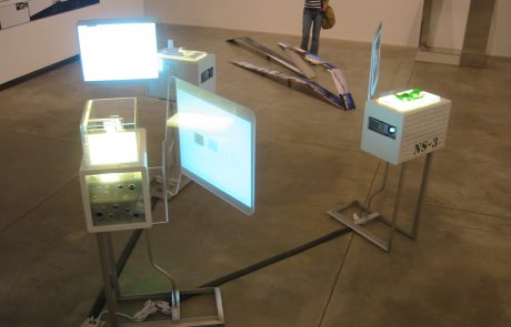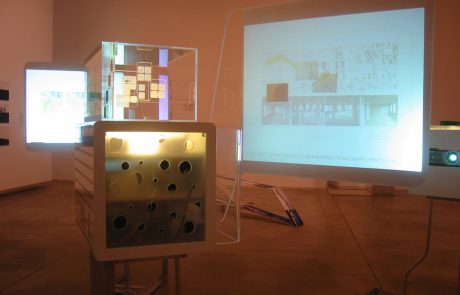 The contribution by MBAC, as an invited participant in the exhibition, explores the notion of negotiable space as a conceptual idea that activates passive users into actors within architectural and public landscapes. Within the context of the exhibition, this idea is catalyzed though the creation of three interactive structures that establish a spatial relationship within the gallery space and within which the viewer becomes an engaged participant within the meaning of the work. Each of the illuminating and projecting structures contain models and graphics depicting how negotiable space becomes represented in each project: the Ramsay Redevelopment project, Tag Advertising Studios, and the New Varscona Theatre.