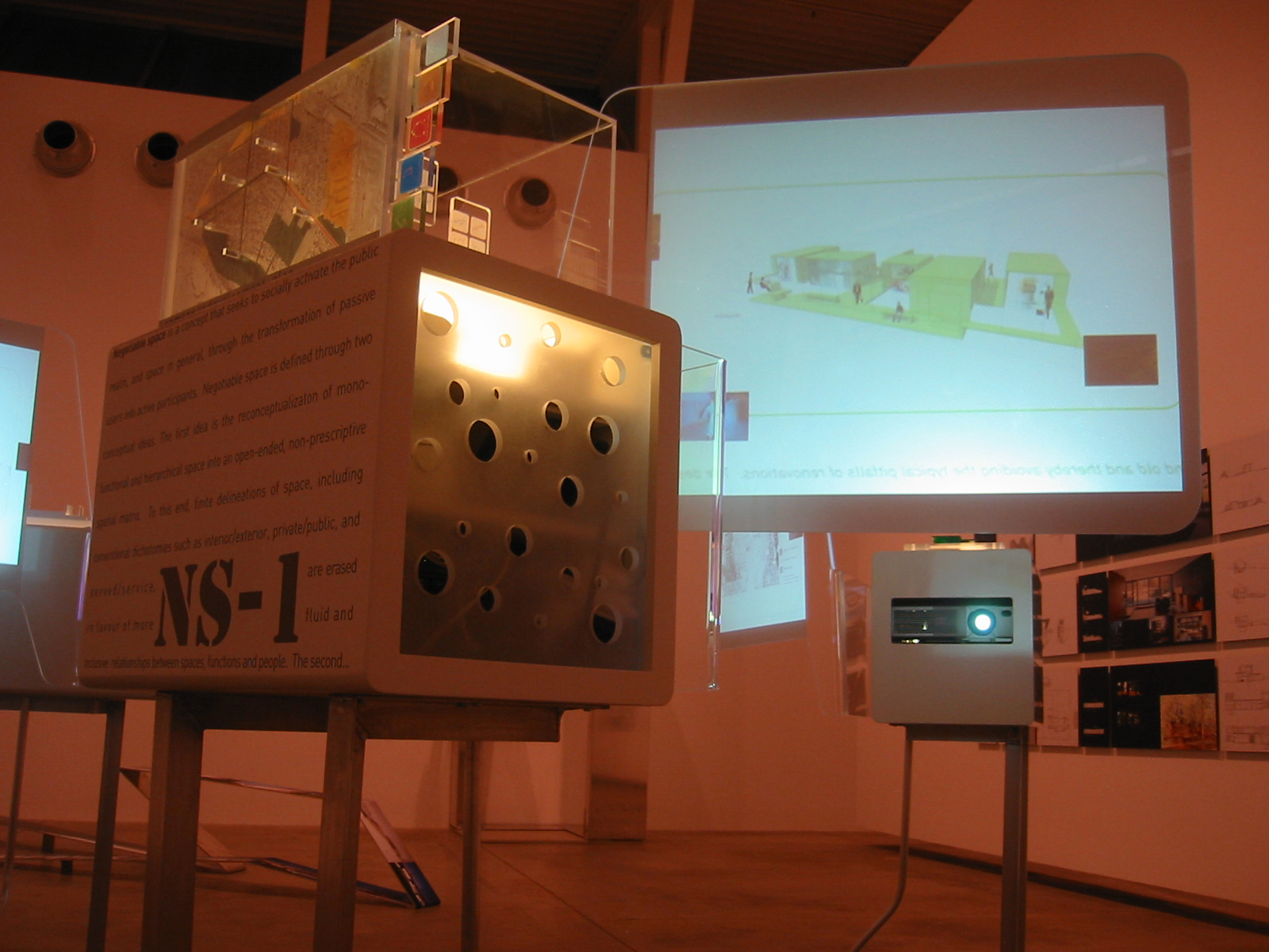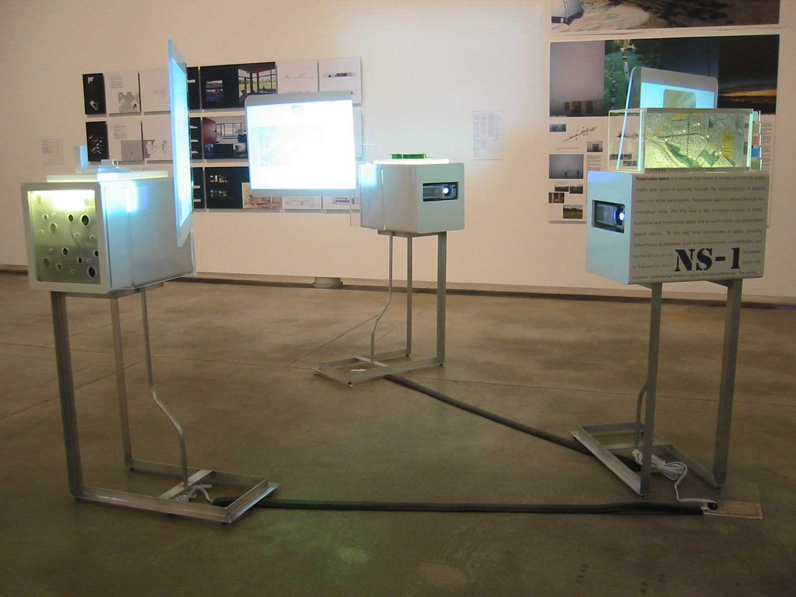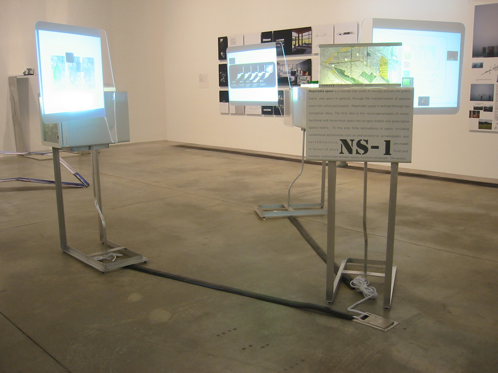 Negotiated Space (designed with the marc boutin architectural collaborative) Negotiated Space was an invited installation to the exhibition Substance over Spectacle,  Belkin Art Gallery, Vancouver, BC, a nation-wide exploration of contemporary Canadian architecture curated by Andrew Gruft.. The thesis implicit in the title argues for the complexity and integrity of the best Canadian architecture, in an international context which often bestows the highest profile on buildings that tend toward the spectacular.