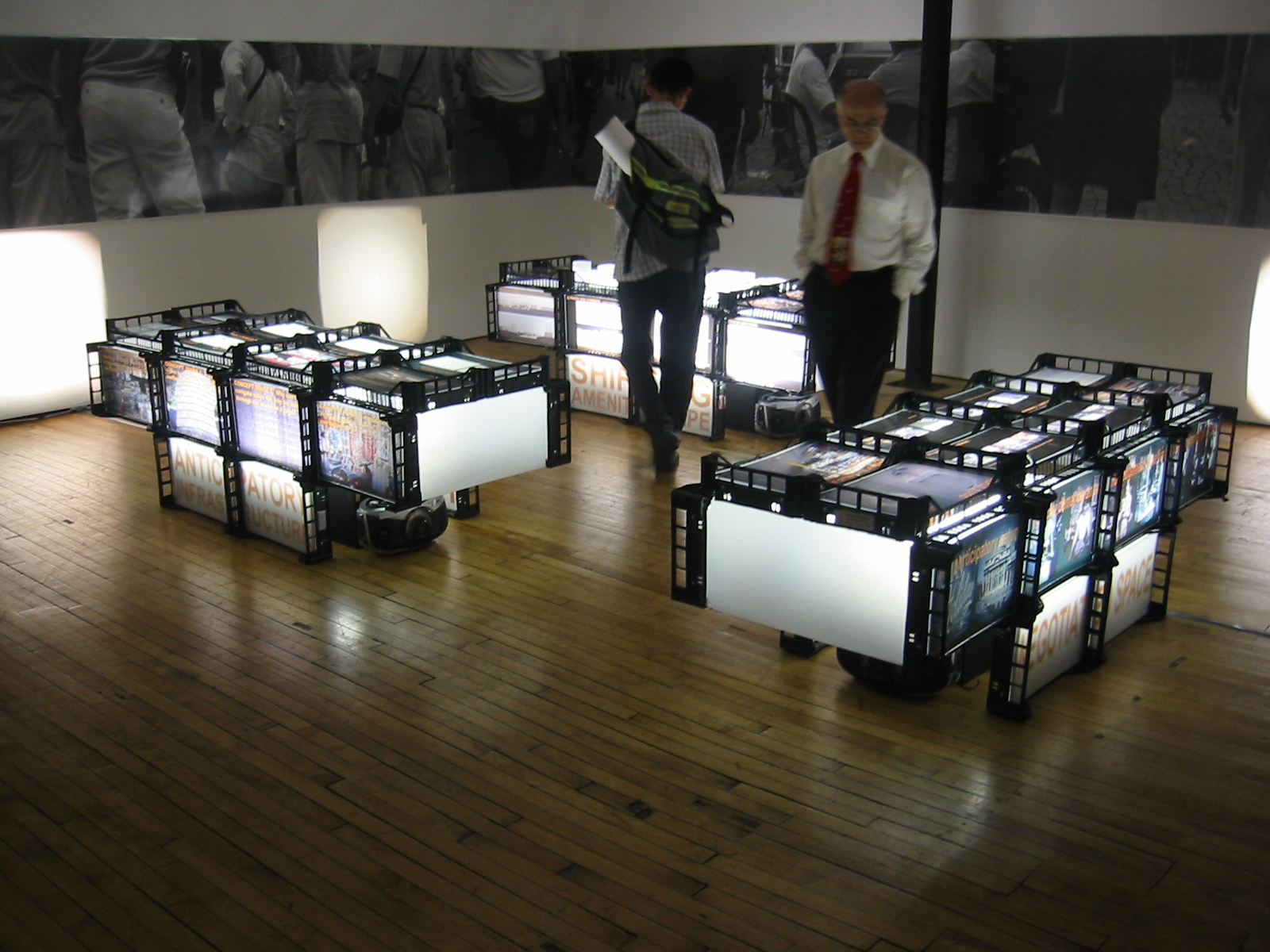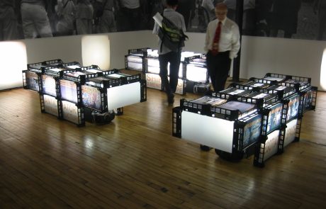 The installation consists of three, three-dimensional units that are in part containers (for models, found objects, drawings, images and text collected and/or constructed during the Prix de Rome study in Rome), and receivers and projectors (for video and sound). Participants navigating the installation become active agents in the unfolding of the installation’s ideas. Their movement is traced through projections from the units that collapse their presence into image fragments from different public spaces in Rome. Continuous sound loops evoke the transformations evident in the occupation of the public realm over seasonal and diurnal changes. The installation is conceived as an interactive and participatory space and is therefore designed to be tuned to the different spaces it occupies.